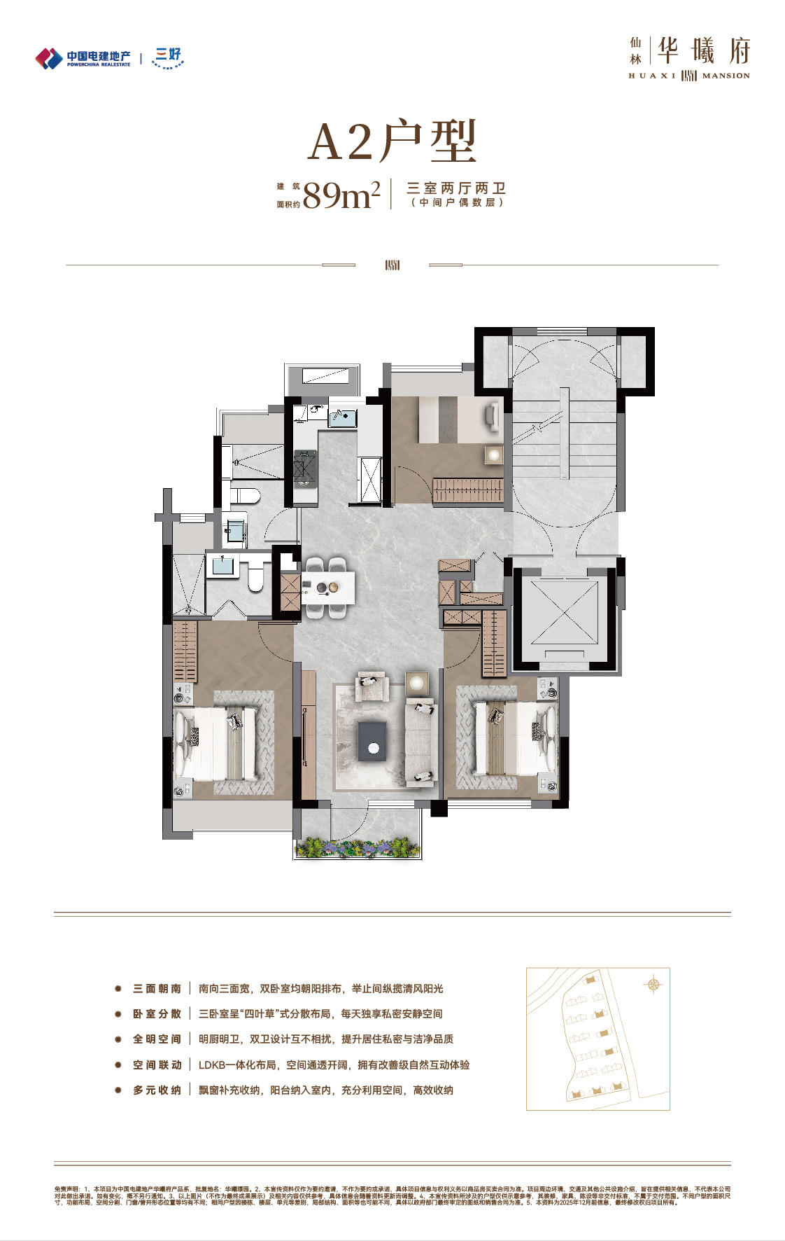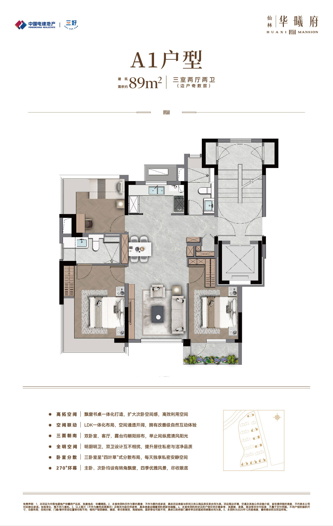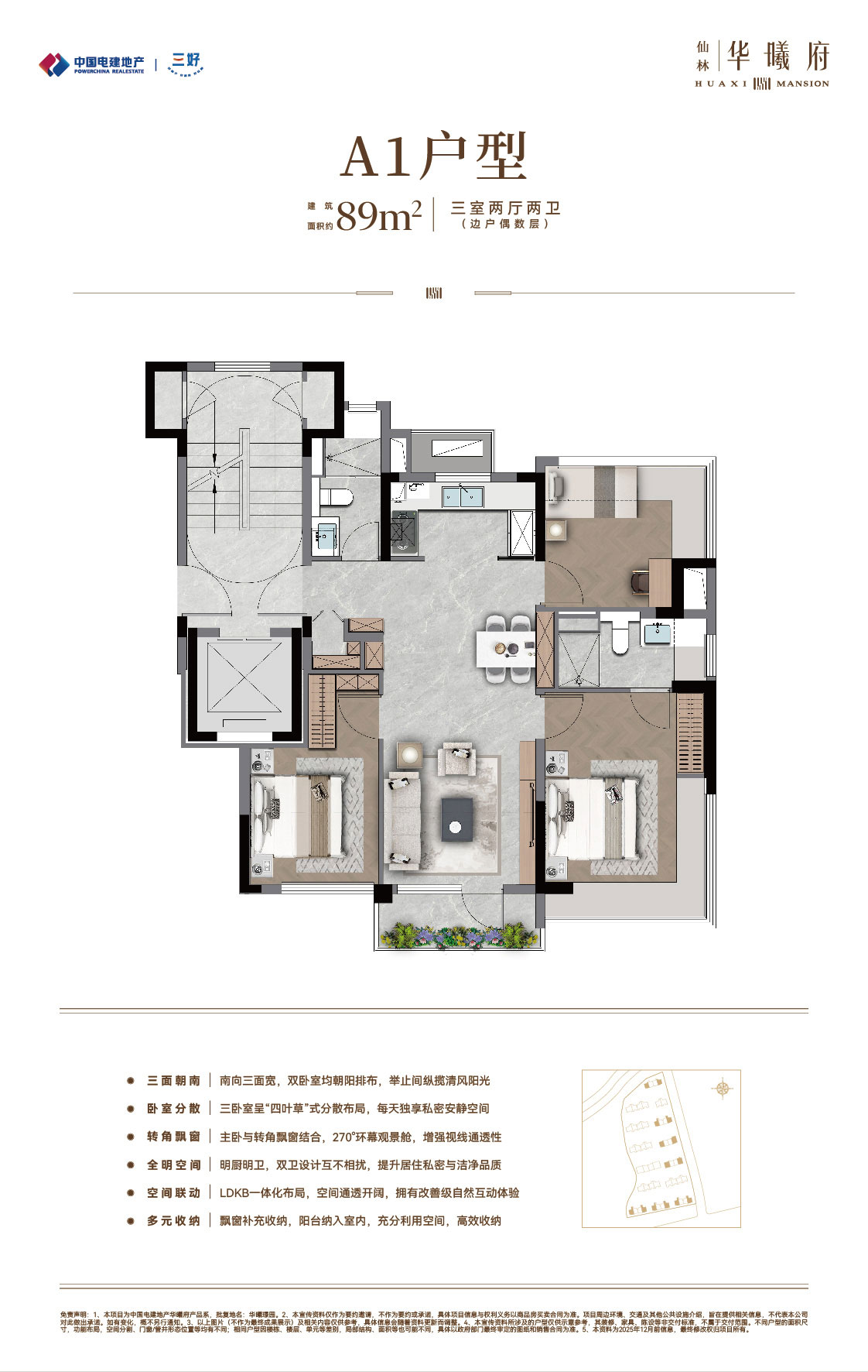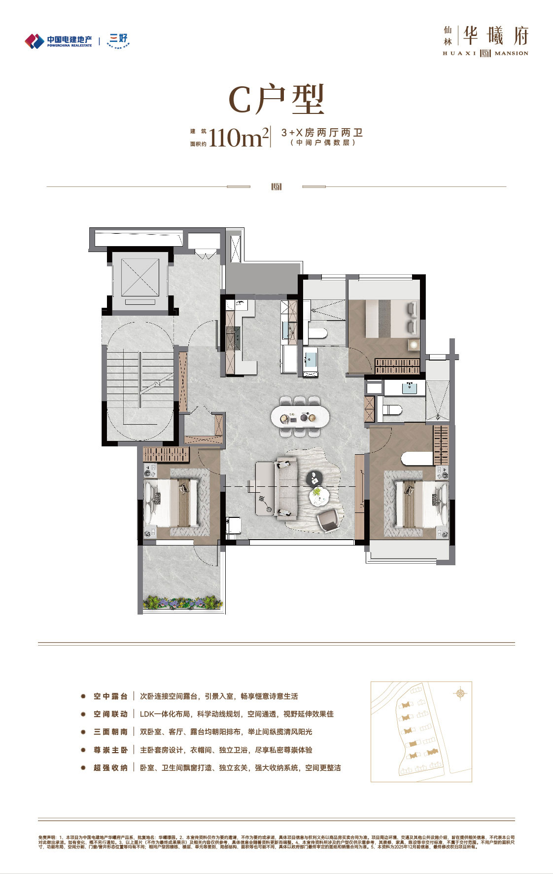 中国电建地产·仙林华曦府项目位于南京仙林湖板块,邻近地铁4号线/2号线/S5号线摄山站(在建中),靠近金陵小学、金陵中学等教育资源,并可享万达茂、金鹰湖滨天地等商业设施。作为电建“绿水青山”系-绿系-华曦府作品,项目主力打造第四代纯洋房住宅,容积率为1.5,规划了14栋9-10层、户型建筑面积约89-131㎡的低密洋房,致力于营造现代低密生活体验。产品与配套方面,项目秉承“建房之前先建城”理念,优先打造了两大主题公园:南京首个桥洞运动主题公园-“仙林湖元气场” 和区域首个滨水露营主题公园-“华曦公园”,为居民提供了丰富的休闲选择。此外,社区内还规划有双会所,涵盖健身、社交等功能;约65㎡酒店式门庭,高山流水轻奢立面,多维度实现项目高品质。(项目信息以政府公示及合同约定为准。)